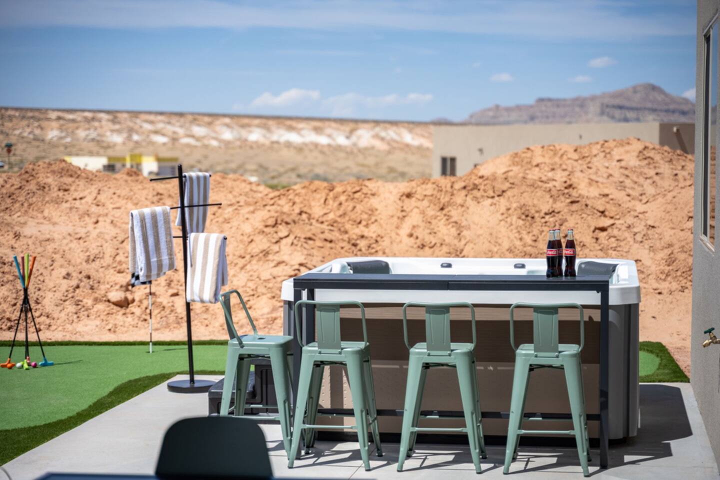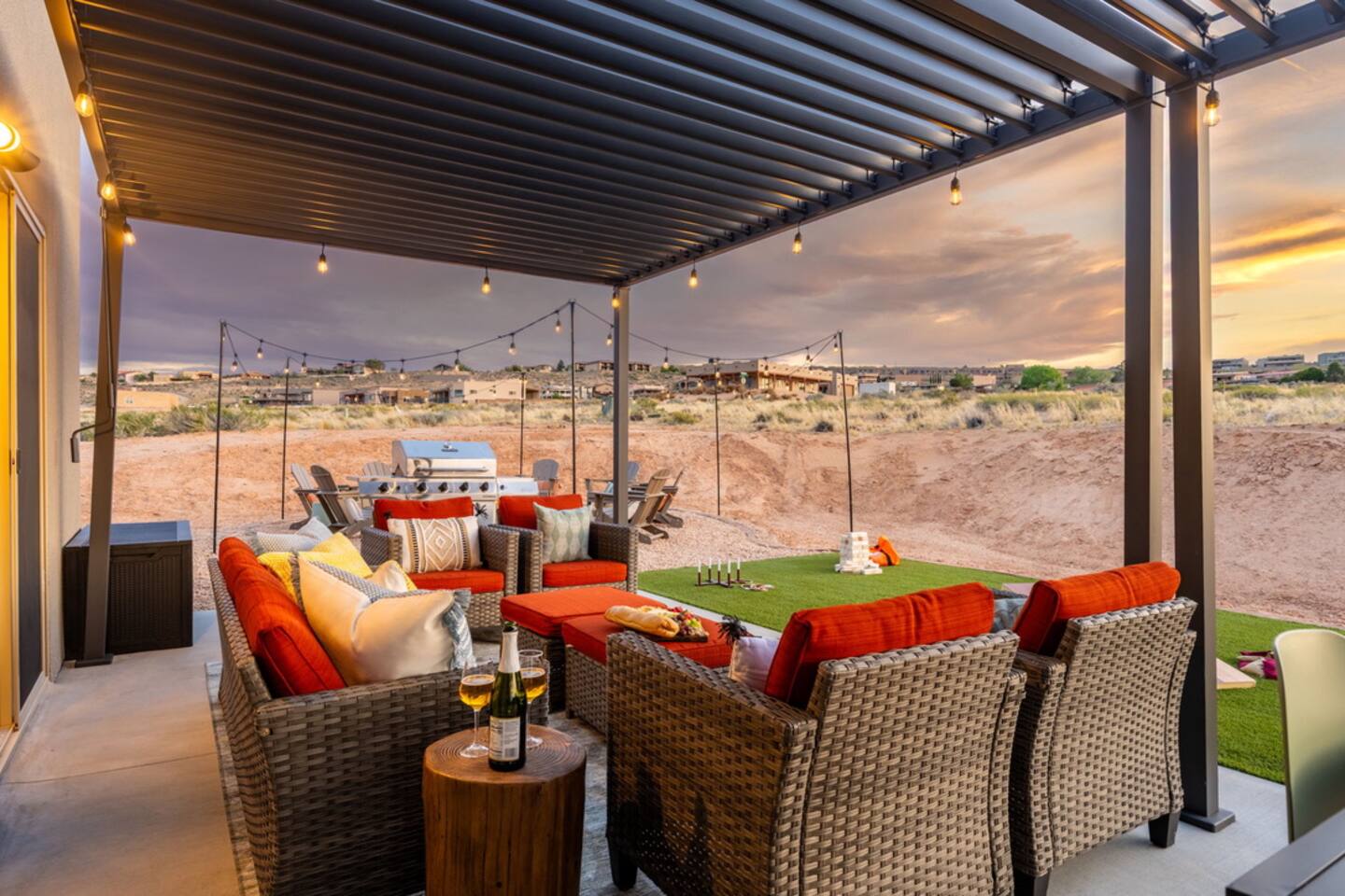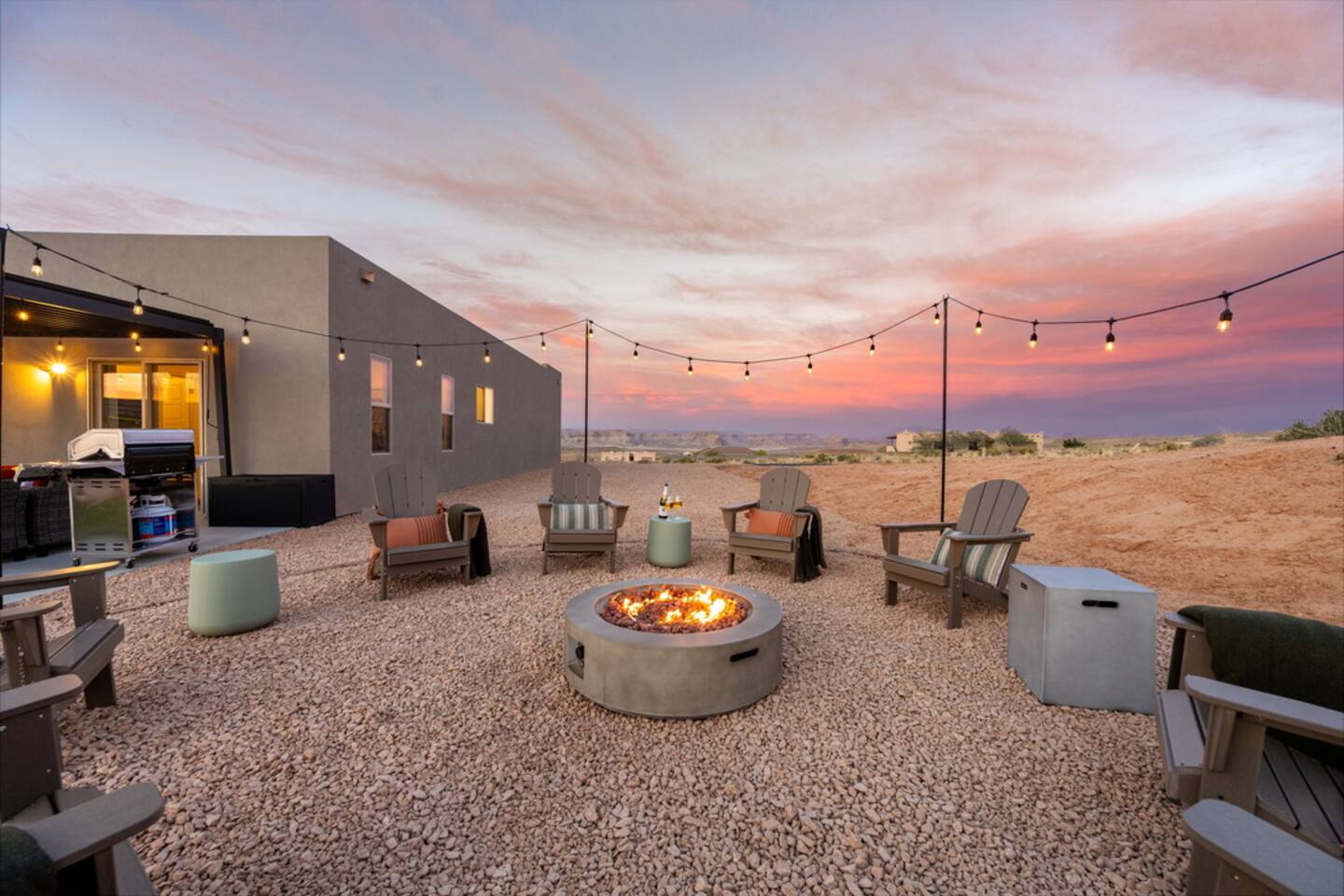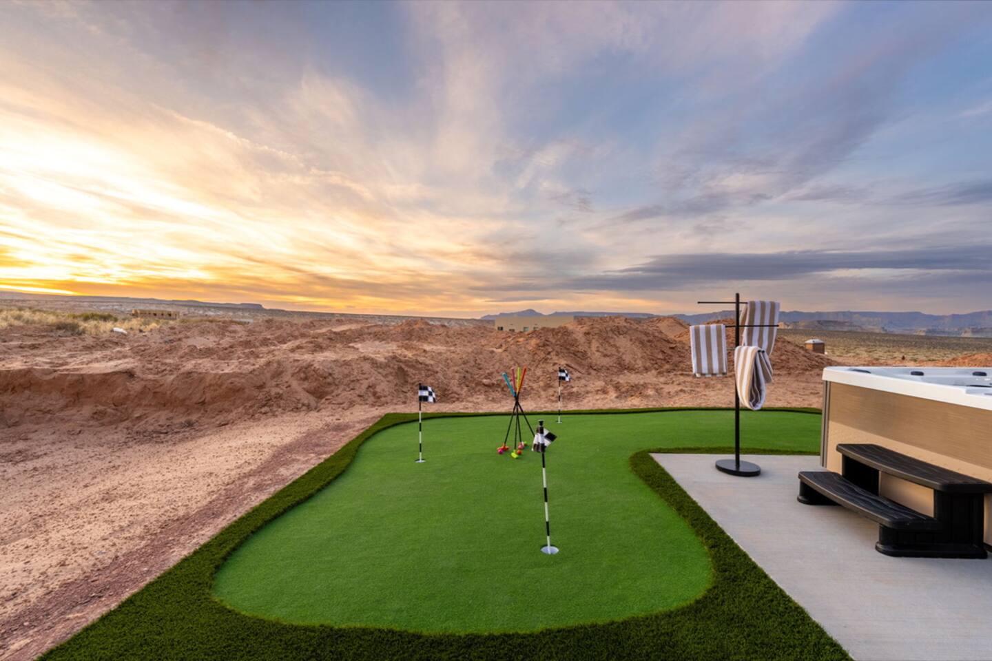 The Powell Place is just minutes from Wahweap Marina, Horseshoe Bend, and Glen Canyon Dam — the ideal spot for lake lovers, hikers, and relaxation seekers! Sleeps 18 | 5 Bedrooms | 3.5 Bathrooms Amenities: • Hot tub & fire pit • Putting green • Sand volleyball & badminton court • Game room with pool table, ping pong table, foosball table & arcade games • Outdoor movie theater & patio dining • Cornhole, giant Jenga, ring toss & yoga mats • Tons of parking – RVs, boats & jet skis welcome!