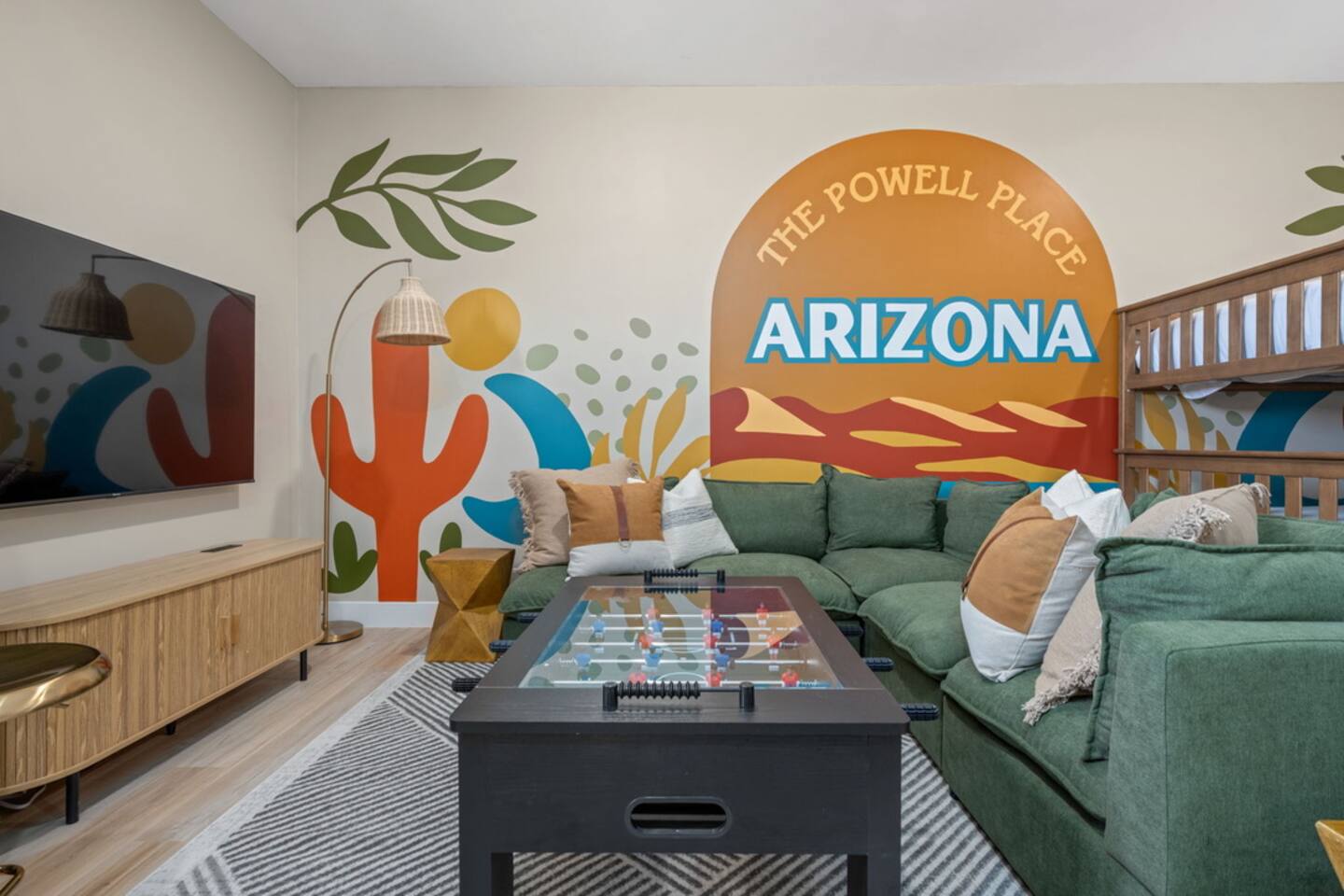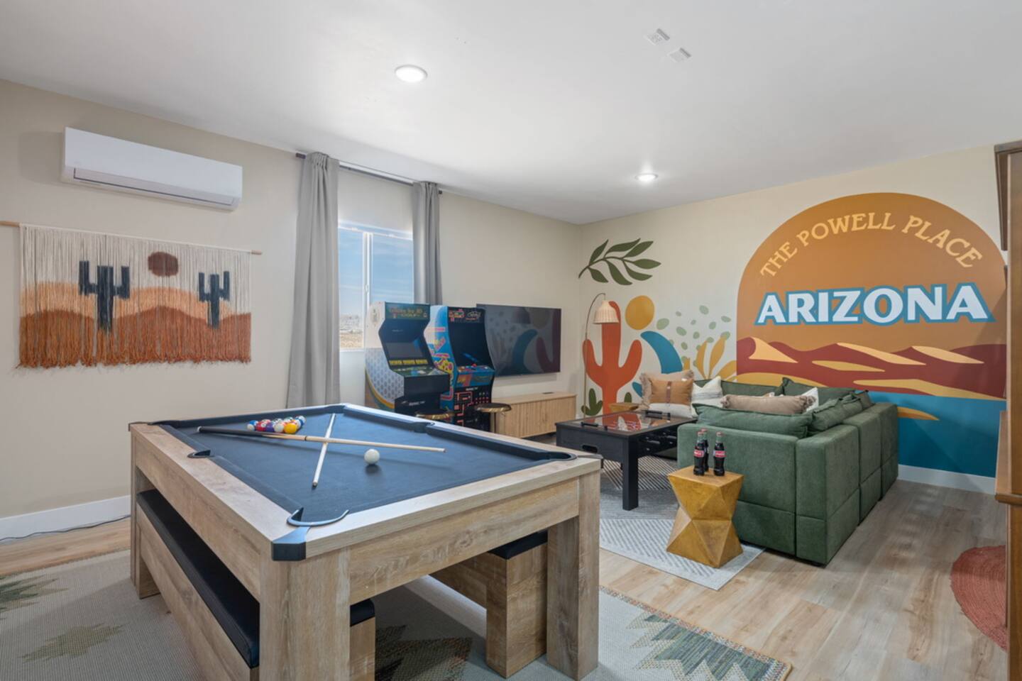 🌊 The Powell Place – Lake Adventures & Desert Vibes Await! 🏜️ Welcome to The Powell Place — your ultimate desert oasis tucked right in the heart of adventure! Just minutes from the sparkling shores of Lake Powell, Wahweap Marina, and world-famous sights like Horseshoe Bend and Glen Canyon Dam, our home is the perfect basecamp for lake lovers, desert explorers, and relaxation seekers alike. Whether you're paddle boarding on Lake Powell at sunrise, hiking slot canyons by day, or stargazing by the fire pit at night, The Powell Place brings the best of Northern Arizona right to your doorstep. 🏡 Room for Everyone Sleeps 18 guests comfortably across 5 spacious bedrooms and 3.5 bathrooms, including a cozy bunk room that the kids (and kids-at-heart) will love. Perfect for family reunions, group getaways, or adventure retreats. 🚐 Plenty of Parking — Bring the Toys! No need to stress about space — there's ample parking for all your vehicles, plus a designated area for RVs, boats, and jet skis. Whether you're towing the toys or rolling in with your crew, we’ve got room for it all. 🌟 Outdoor Paradise Step outside and get ready for serious fun and relaxation: • Soak in the private hot tub after a day on the lake • Practice your technique on the putting green • Serve it up on the sand volleyball and badminton court • Catch a flick under the stars in the outdoor movie theater • Roast marshmallows around the fire pit or enjoy dinner under the desert sky at the outdoor dining patio • Challenge your crew to cornhole, giant Jenga, ring toss, or a group yoga session on the provided mats 🎮 Indoor Game Zone When you're ready to escape the sun, head inside to the game room featuring: • Pool table • Ping pong table • Foosball table • Arcade games • Poker set for late-night tournaments • Local, Arizona-inspired murals and desert art that bring the Southwest vibe indoors 🍳 Fully Equipped Kitchen Our spacious kitchen comes ready with everything you need — cookware, utensils, and all the essentials — whether you’re whipping up breakfast before the boat ride or hosting a taco night with the crew. ✨ Designed for Lake Goers, Explorers, & Relaxers Whether you're here to boat, hike, snap epic photos, or just kick back and vibe, The Powell Place offers a perfect blend of comfort, fun, and natural beauty. Come for the views, stay for the memories — and make The Powell Place your go-to getaway in Page! Amenities: Hot tub Fire pit Putting green Outdoor movie theater Outdoor sand volleyball & badminton court Patio dining Outdoor lounge area BBQ grill Yard games (cornhole, giant jenga, ring toss) Yoga mats Shaded pergola Pool table Ping pong table Foosball table Poker set Fully equipped kitchen Spacious living area with flat-screen TV Master suite with en-suite bathroom High-speed Wi-Fi Air conditioning Washer and dryer Wahweap Marina: 6.4 miles (13 min drive) Lone Rock Beach: 3.9 miles (9 min drive) Glen Canyon Dam: 7.6 miles (11 min drive) Horseshoe Bend: 13 miles (22 min drive) Antelope Canyon: 17 miles (25 min drive) Lake Powell National Golf Course: 9.3 miles (14 min drive) Toadstools Hike: 21 miles (22 min drive) 📅 Book now and start planning your Lake Powell adventure! Coconino Permit #: STR-25-0439